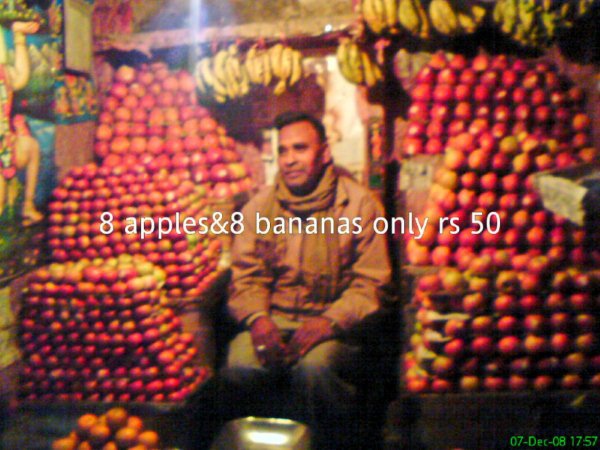 路邊攤,samosa..烤蕃薯.masala potatoes..都挺好吃的.有機會不妨多嘗試.尤其是便秘時,哈...果汁也挺好喝,一杯現柞500cc的石榴+橘子+紅蘿蔔汁約25~30rs不等.買東西要找已經有標價的再去殺,不然你就要繞一圈多方比價,減少被A的可能.不過
